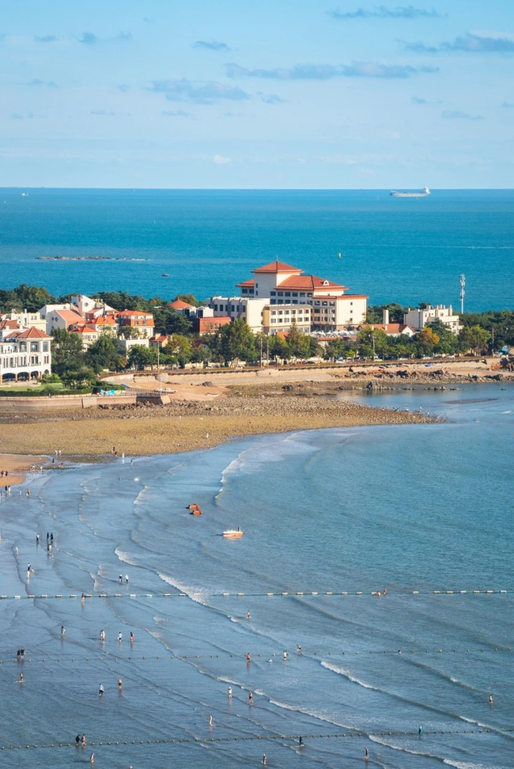 第一海水浴场,这片半月形的金色沙滩躺在汇泉湾的臂弯里,是大批东谈主来到青岛亲海的第一选择。沙滩上支起五彩的遮阳伞,远远眺去像撒了一地的糖果,海水蓝得透亮,近岸处泛着细碎的浪花,沙滩带着阳光烘烤后的暖意,赤脚踩上去会留住了了的脚印。